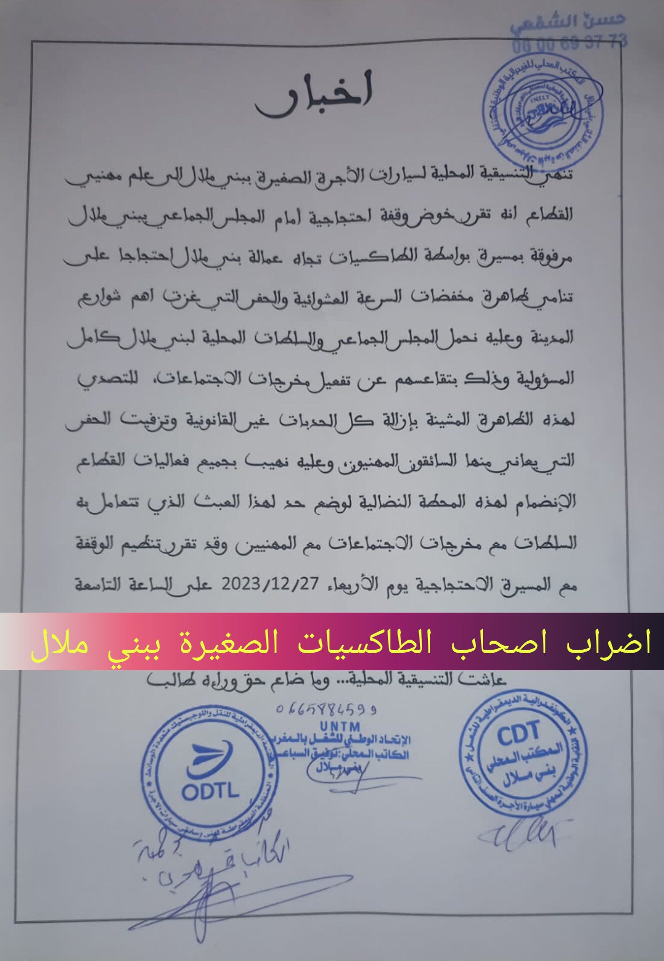 ،” الضوضانات العشوائية تخرج اصحاب الطاكسيات الصغيرة للاحتجاج ببني ملال