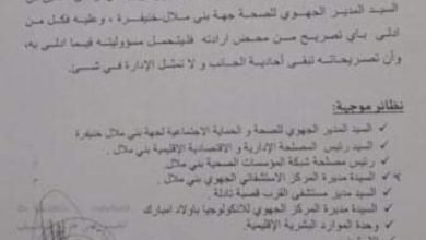 هذي واعرة….مندوبية الصحة والحماية الاجتماعية ببني ملال تصدر مذكرة داخلية تمنع من خلالها تحدث موظفي القطاع التحدث للصحافة