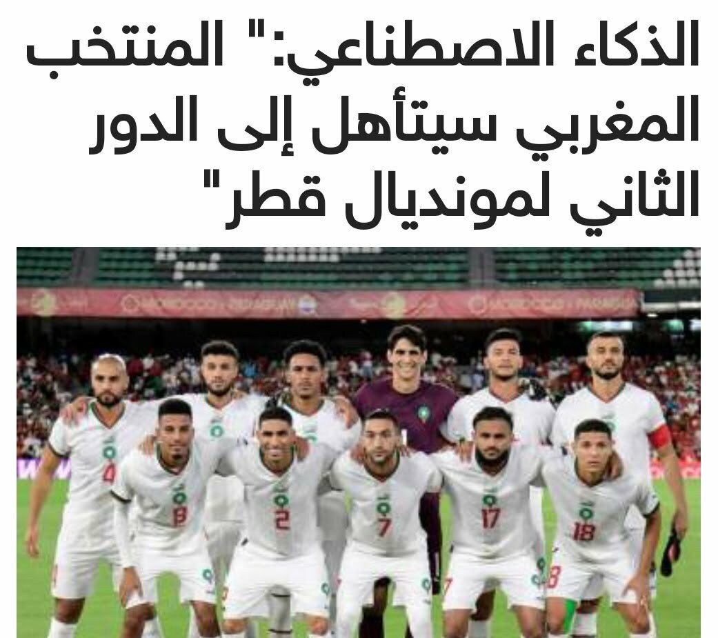 الذكاء الاصطناعي:” المنتخب المغربي سيتأهل إلى الدور الثاني لمونديال قطر” أجرت شركة الذكاء الاصطناعي “Twenty First” عمليات المحاكاة الخاصة بها…